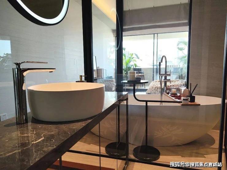 采用全屋中央空调和全屋地暖,进户门为豪宅定制铝铸门搭配智能指纹密码锁,墙面地面使用大理石,地板为橡木实木多层复合地板,墙面全部采用真丝壁纸,厨房柜子和衣帽间由德国菲林格尔的代工品牌MD打造,配备汉斯格雅花洒、伊莱克斯对开门冰箱等高端家居设备。