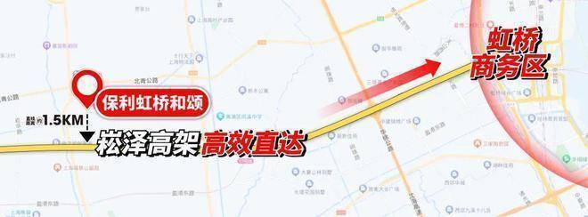 保利虹桥和颂直线距离崧泽高架仅约1.5公里,上高架后没有红绿灯直通大虹桥核心.