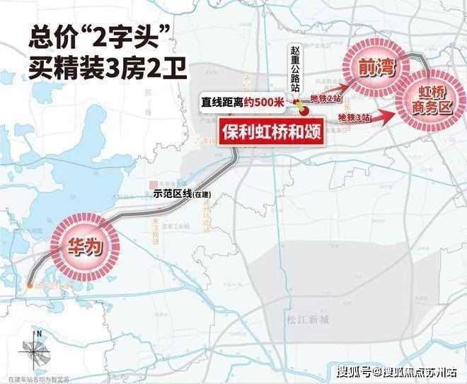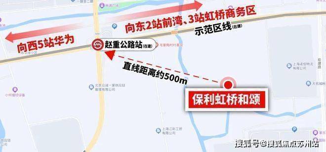 保利虹桥和颂第一大特征是轨交房,直线距离示范区线(在建)仅约500米,是板块内少有可轻松至轨交站点的新房.