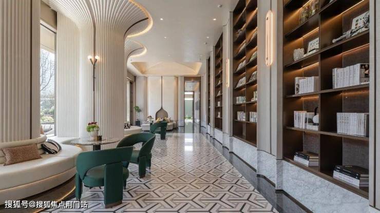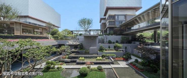 与这两年流行的“阔绰”门头相比,这座鎏金门头最大的亮点是通透——不仅顶部有一个圆形的镂空,偏置的大堂也为风景让了路,正前方没有任何遮挡,反而把最精彩的立体花园化作一幅动态图景,点缀了整条街道.