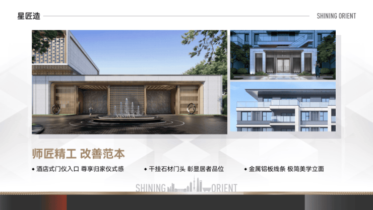 在人居建设方面,新华·星耀东方追寻建筑比例与神韵,把时光沉淀下的建筑美学与低调奢华的质感融入建筑.将传统意境和现代风格对称运用,现代简约的外立面、典雅的建筑屋顶,于细节处精心勾画的窗户、阳台等,每一处细节皆是考究.