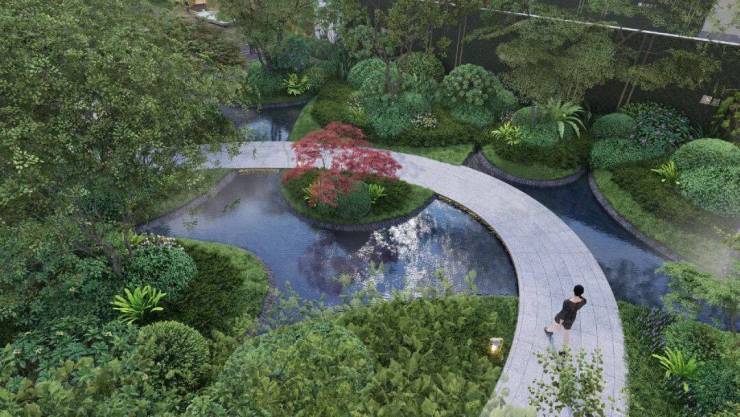 项目整体以摩登东方为核心造景理念,营造一环两轴N组团的景观布局,将花草、树木、流水、山石、景墙编织成序曲语言,在浮躁与喧嚣的城市中,用宁静温润的语言将摩登东方的惬意美好娓娓道来.