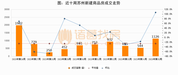 【苏州成交周报】第35周新房成交1126套,二手房1084套,涨价房源105套