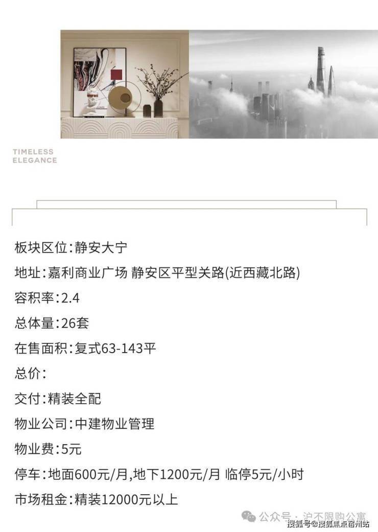 * **价格对比产生的“洼地感”**:项目宣传总价385万起,单价约6万/平方米。这与同区位单价动辄15万元以上的顶级住宅(如静安玺樾)形成巨大价差,对于追求静安地段但预算有限的买家,形成了强烈的价格吸引力。