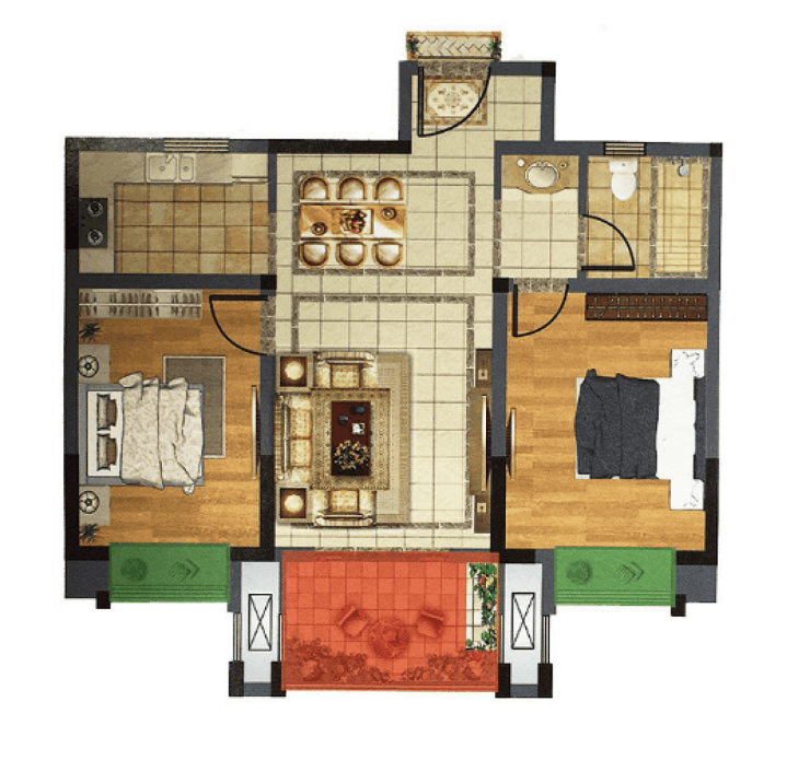 C户型2室2厅1卫85m2