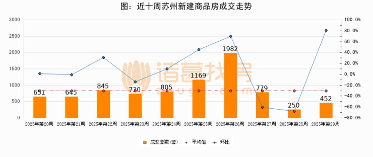 【苏州成交周报】第29周新房成交452套,二手房1122套,涨价房源1023套
