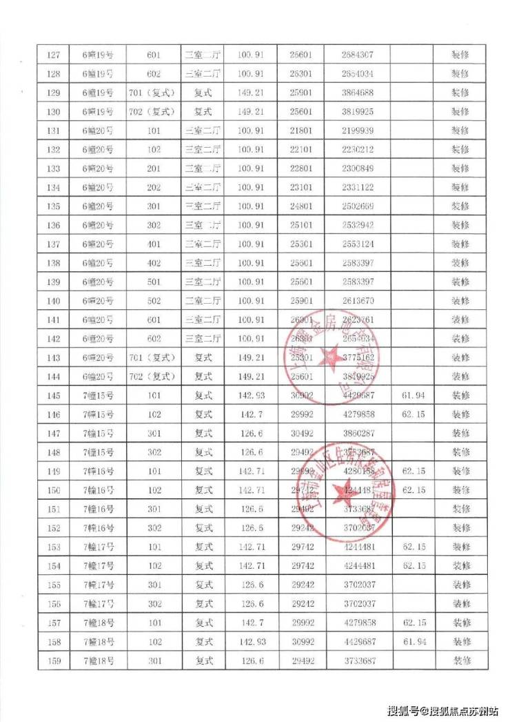 项目一房一价表