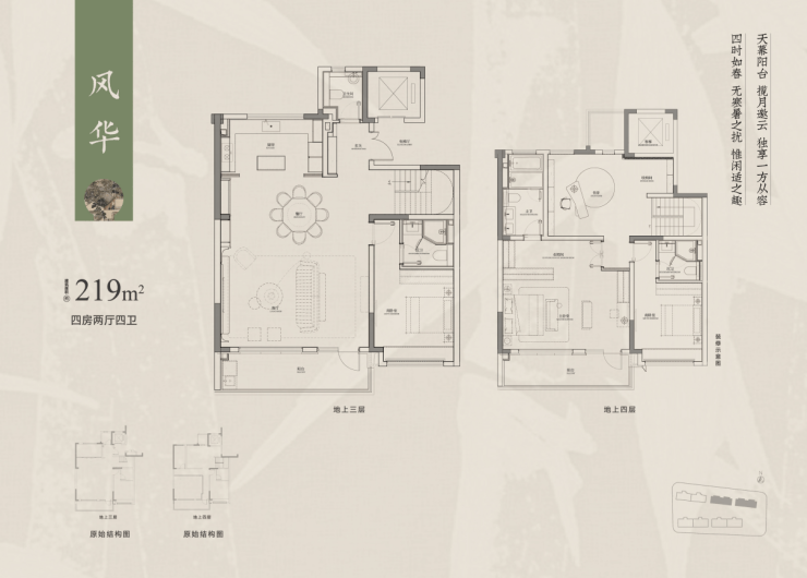 中叠·约219m²【风华】 四房两厅四卫。天幕阳台,视野开阔,独享从容。