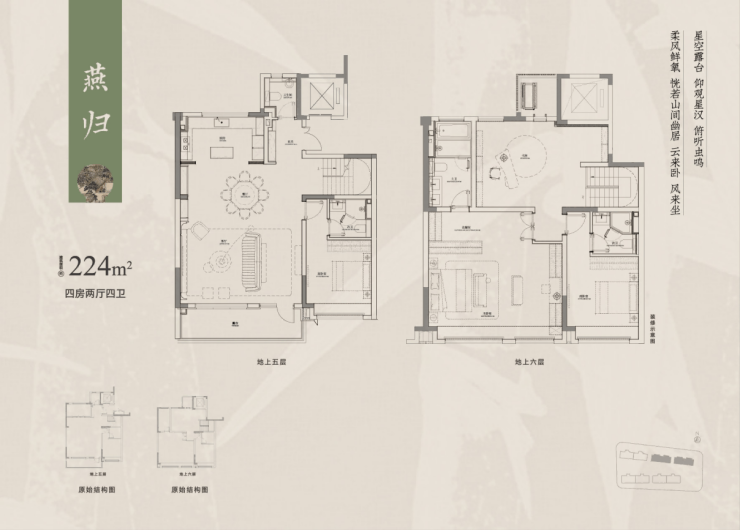 上叠·约224m²【燕归】 四房两厅四卫。拥有星空露台,仰观星河,私密性极佳。