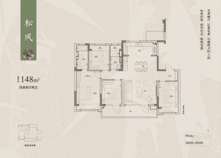 洋房·约148m²【松风】 四房两厅两卫。无界横厅,巨幕观景,引自然光景入室。
