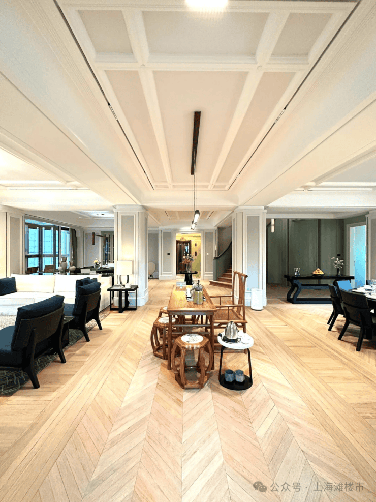 项目户型丰富多样,涵盖350㎡大平层(入门级)、550㎡大平层、600㎡复式、700㎡半层大平层、1220㎡大平层以及1500㎡整层大平层等多种选择。其中,1500㎡整层大平层尤为亮眼,拥有60米南向面宽和14个阳台,可全方位欣赏外滩、陆家嘴等城市景观。
