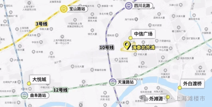 【海泰北外滩】位于虹口四川北路天潼路附近,距离外滩源仅约600米!2公里范围内拥有宝格丽酒店、Bellagio酒店、W酒店、南京西路、中信广场等核芯配套,真白金地段!