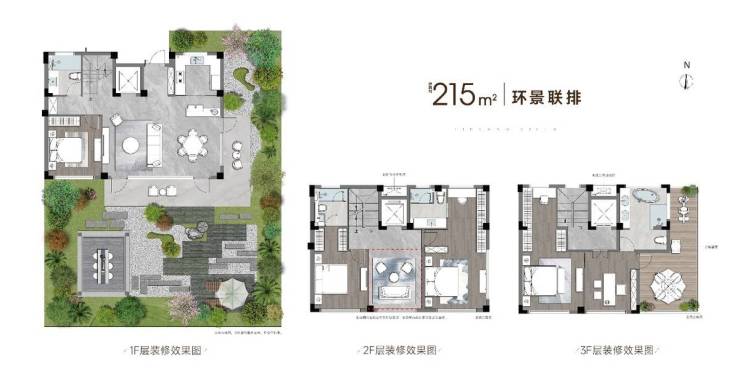 建面约215㎡的联排产品,以“大面宽、短进深、全套房、多庭院”的设计,迭代苏州墅居体验。南向面宽做到约10.7米,实现三面宽朝南与全套房设计,彻底告别传统别墅的幽暗与闭塞。围合庭院+约4.8米挑高地下室+星空露台,它不是别墅空间的简单组合,而是对家庭社交、成长、休憩等全场景营造。
