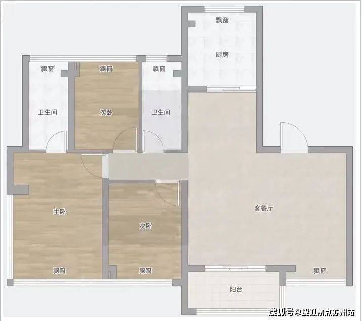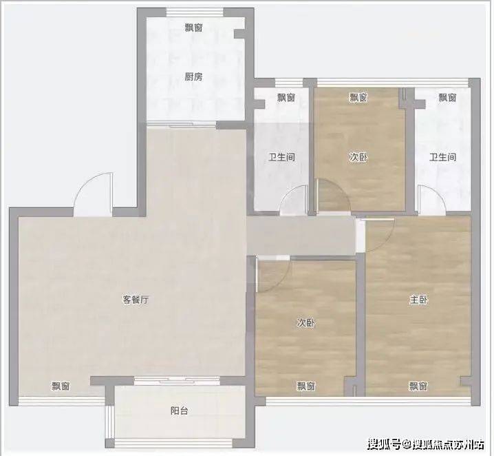 户内楼面高度不一致,错开之处有楼梯联系。但没有完全分为两层。(适合大面积住宅,小户型会显得局促)