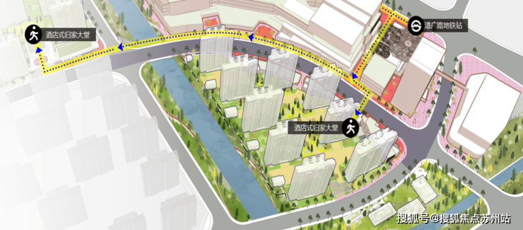 项目联通城市轨交、快速直达主干道和开放街区步道,打造三重立体路网体系,构筑组织多样性,实现快耍慢活的生活节奏,并借此 串联起TOD大城里的商业、公园、街区、广场、地铁、酒店,六大场景。