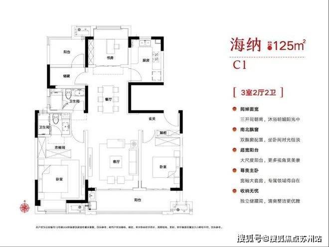 建面125㎡3+1室两厅两卫,总价约为230万左右