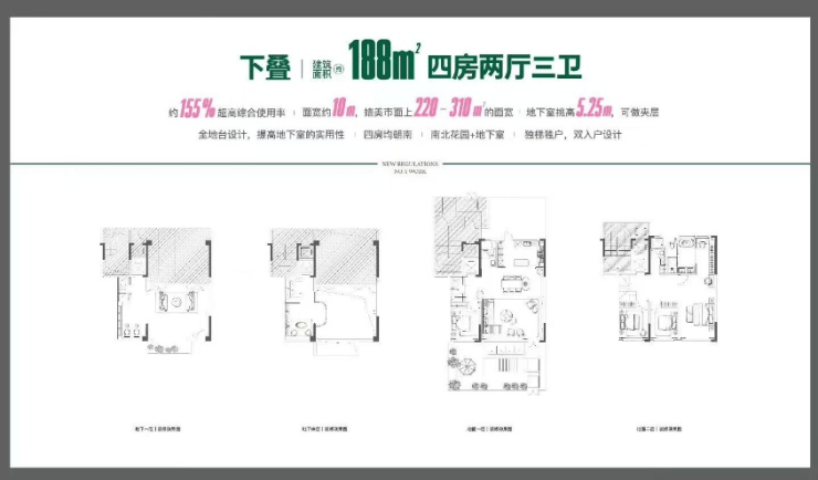 上叠168平四方两厅三卫 下叠188平,四房两厅三卫