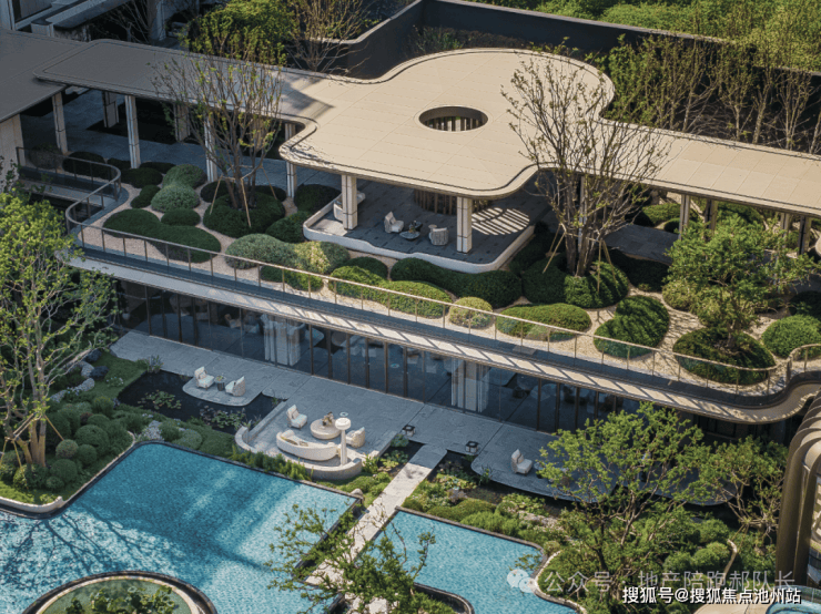 再配合建筑的曲线流动感、小池塘、溪涧、不同形态的植被