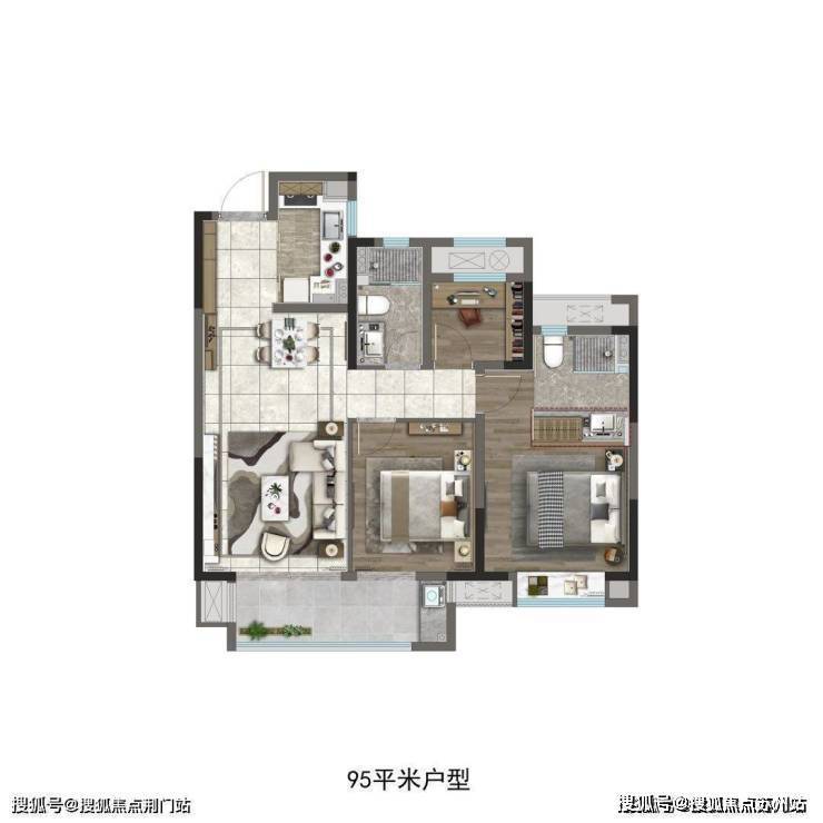 舒适三居:建面约95㎡三室两厅两卫