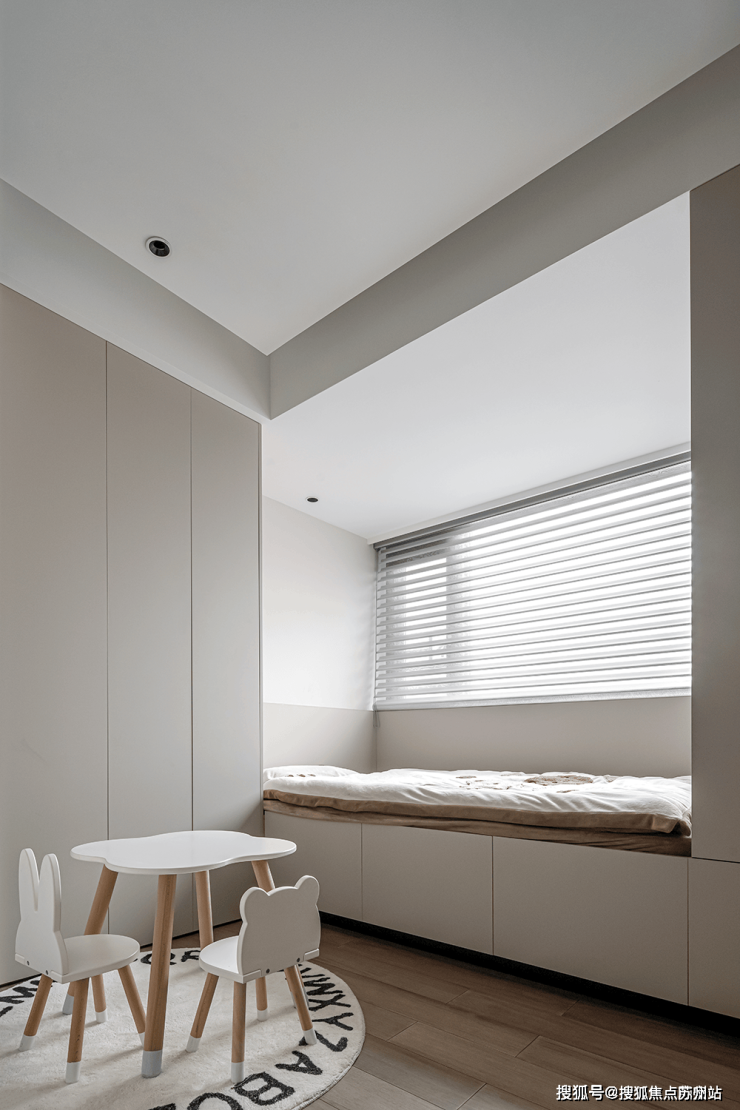 次卧室整体衣柜采用内嵌式处理,桌椅为卡通造型,激发孩子的兴趣和活泼天性。