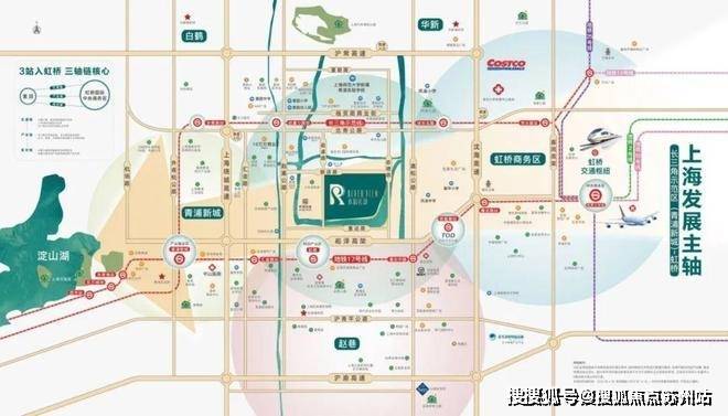 轨交17号线:项目距赵巷地铁站约2.3km,6站直达大虹桥交通枢纽