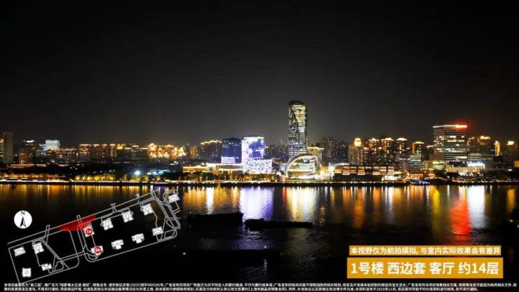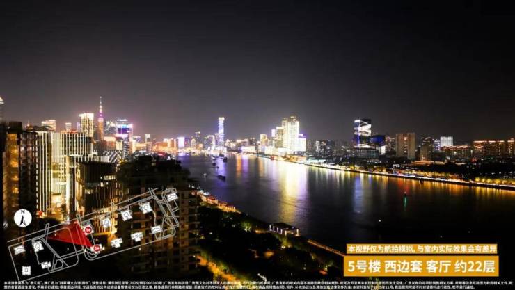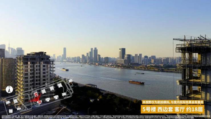 其一,滨江首排占位+占据约1.5公里黄金江岸线,定义顶豪江景天花板。