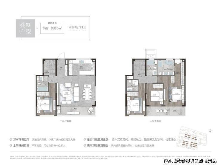 下叠185平户型:四室两厅四卫,总价380-400万