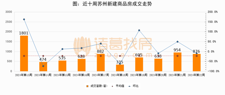 【苏州成交周报】第22周新房成交876套,二手房1321套,涨价房源1718套