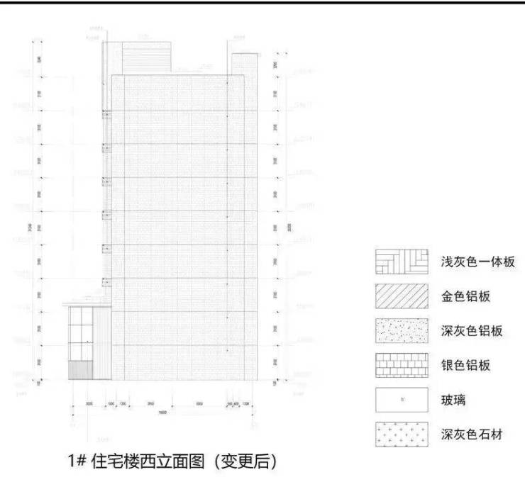 4,从效果图来看,项目的住宅是较为暖色调的,外立面是铝板、玻璃、深灰色石材,这是一个现代化风格的住宅社区;
