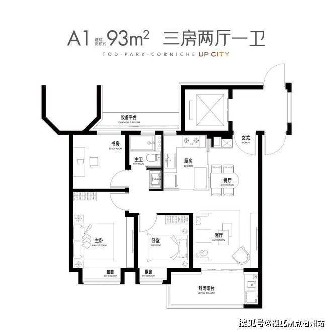 建面约93㎡3房2厅1卫▼