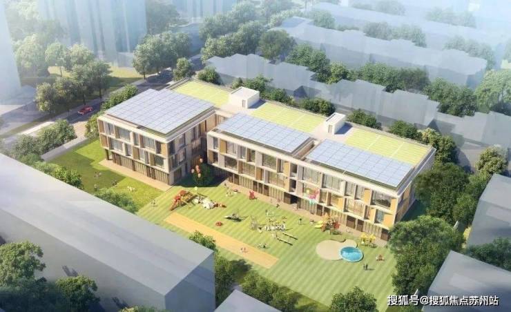 西侧的H3-5地块,将新建一所幼儿园,总建面9530㎡,效果图如下。