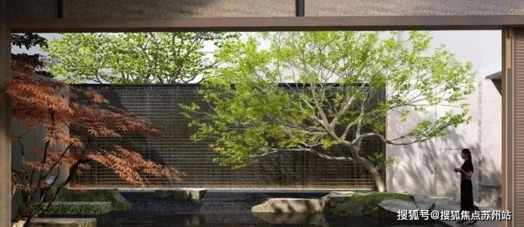 一进院:社区门口的6米宽瀑布景墙+落石+大乔组合,构筑起一道天然噪音屏障,进入瞬时隔离城市喧嚣!