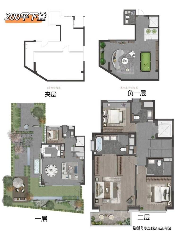 项目摒弃市场常见的6层叠墅设计,采用4层真叠墅结构,去掉了尴尬的中叠,让上下叠均享有落地庭院和地下空间,实现了“户户有天有地”的墅居体验,彻底打破对叠墅的固有认知!