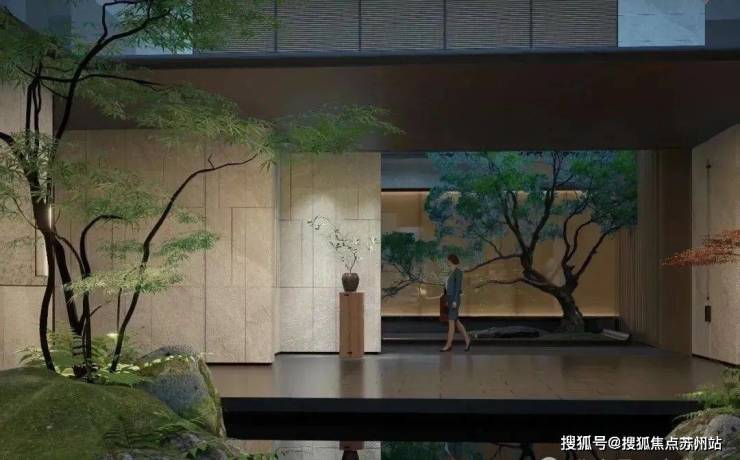 三进院:来到社区中央,18米宽的中心景观轴,搭配景观水池与疏密乔木,形成极简却又不失典雅气质的主景观花园!