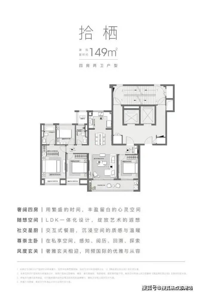 拾栖:建面约149㎡,四房两卫户型