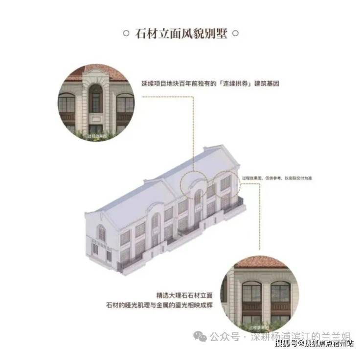 以优雅的拱券形态做为原型创作,萃取"西式洋房"的对称美学与精致细节,融合现代石材,打造"经典形制与当代审美的共生。