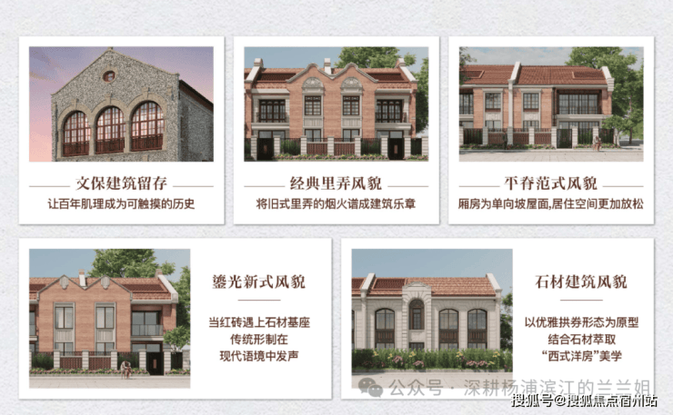 除了户型设计上的全面创新,项目还是全上海第一个多元化形态风貌别墅新房,引入了5大经典风貌建筑制式,让产品立面形态更加多样:
