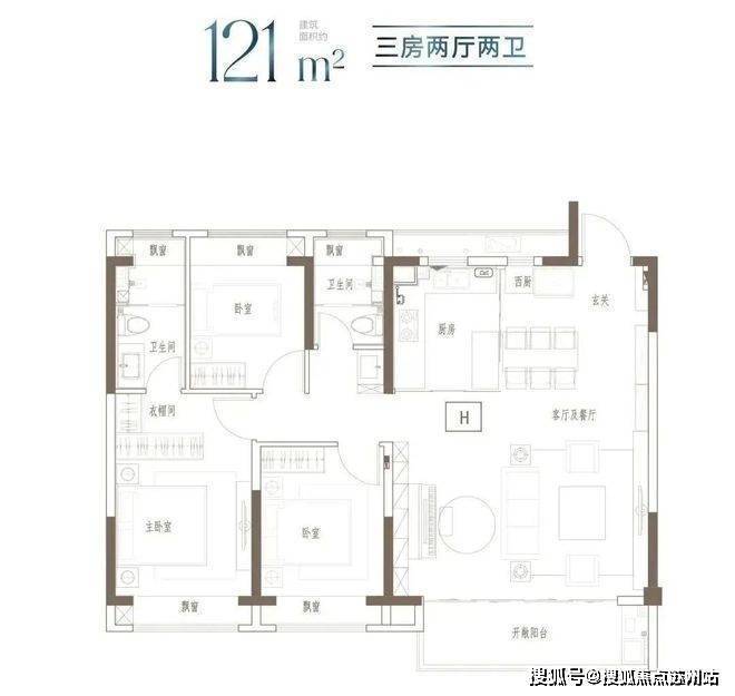 建面约121㎡3房2厅2卫▼
