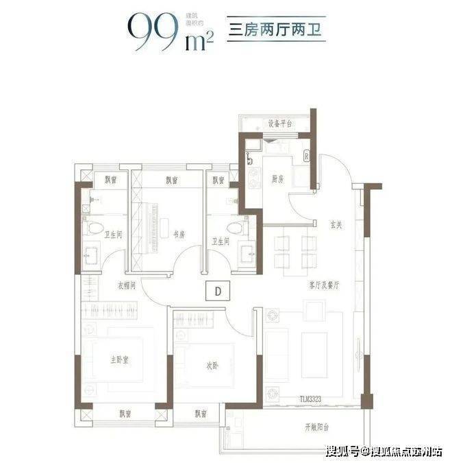 建面约99㎡3房2厅2卫▼