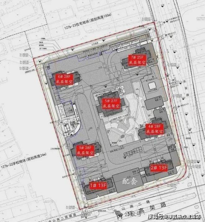 根据设计方案显示,项目拟建2栋13层小高层+5栋25-28层高层,总户数290户。
