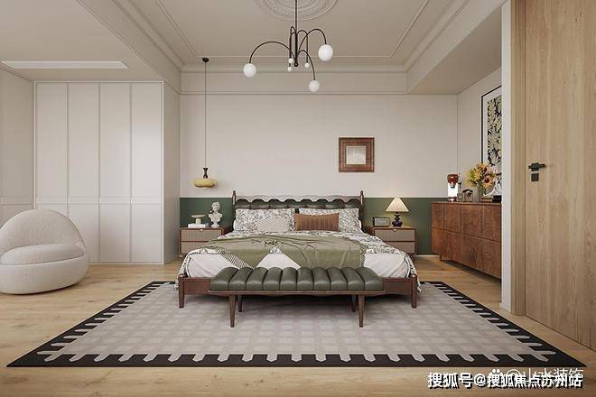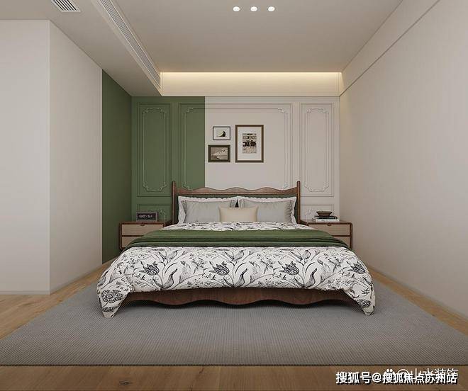 按照居住者的要求,对三楼布局重新优化,将过道扩充进主卧室,改多功能套房。主卧室的睡眠区域我们在暖白基调中,加入绿色拼接,丰富视觉层次,也多了些法式复古的韵味。带角花设计的石膏线做双框设计,简约利落,使得墙面有了多维立体的视觉效果。绿宝园·翡梵24小时vip热线☎:400-8787-554