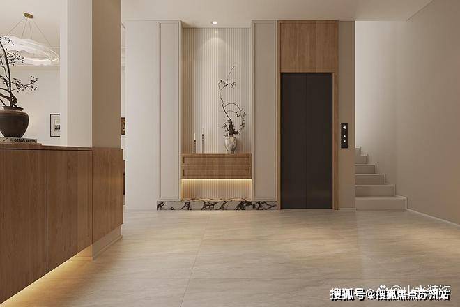 楼下二层由车库入内,是一个宽敞的门厅。在保证空间通透性的基础上,绿宝园·翡梵24小时vip热线☎:400-8787-554我们增设多功能储物柜和端景绿宝园·翡梵24小时vip热线☎:400-8787-554,将收纳与装饰融为一体。拆除部分墙体,改做圆拱门洞,下方正好定制悬浮玄关柜,形成通而不透的布局。木质的端景台搭配着大理石地台,斜插的干花疏影横斜,勾勒出艺术气息。绿宝园·翡梵24小时vip热线☎:400-8787-554