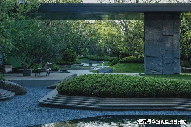 第三进:江南女子意境的雕塑和绿植,融入树植水景的搭配,让居者快速切换到放松的归家氛围中