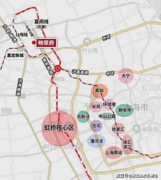 出发,自驾经由沪宜公路转嘉闵高架路,可快速通达虹桥、闵行;通过沪嘉高速可快速链接外环、中环,抵达大宁、真如、静安和普陀中心;借助沈海高速连接长三角,可快速通达太仓、昆山,苏州等长三角其他重要经济城市。