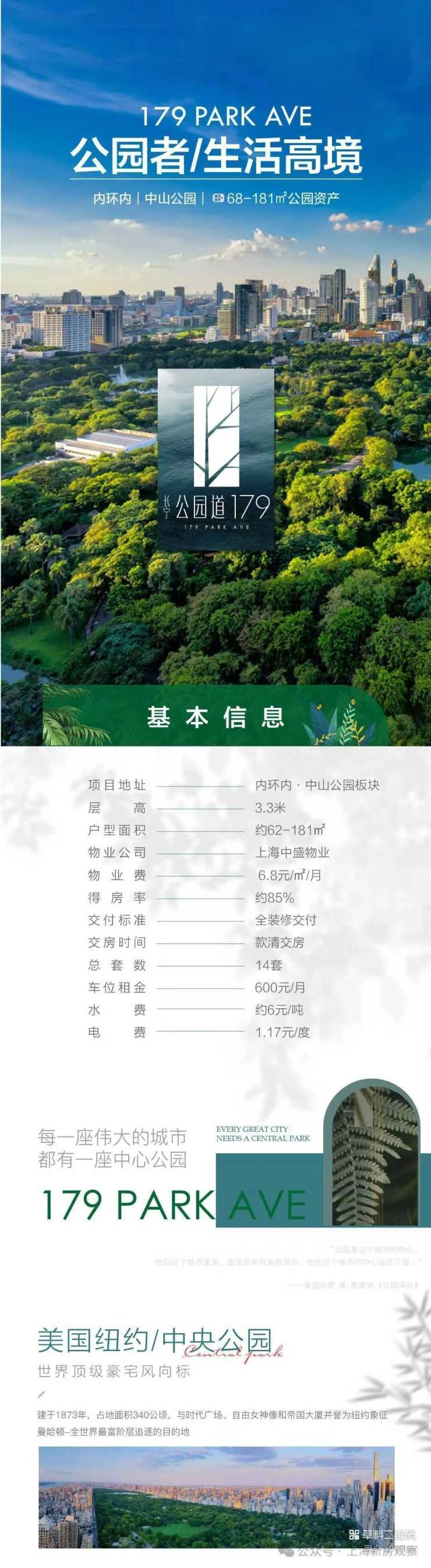 长宁中山公园,2/3/4号线地铁口![长宁·公园道179]建面约68-181平城市轻奢资产;总价约398万起!