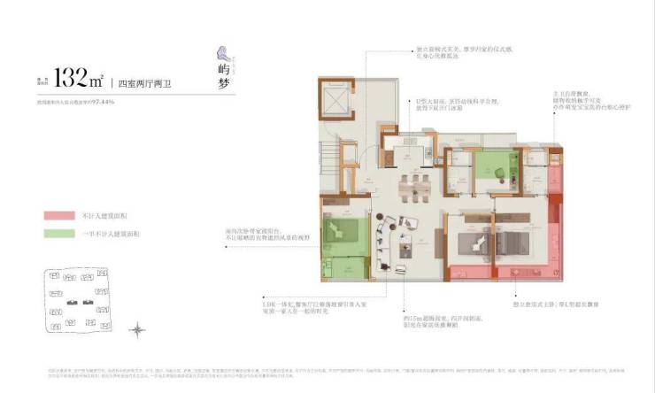 岛屿宽境边套建面约118m² ,飘窗赠送近27m²