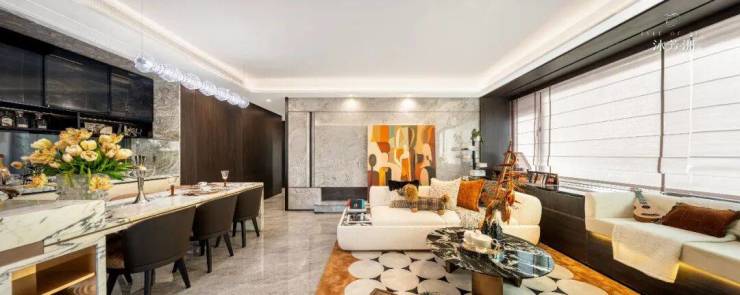 此外,厨房飘窗延展操作台面,客厅东西双飘窗为餐厅增添餐边收纳——每一处设计皆超越尺寸限制,于细节中拓展生活的广度与惬意。(室内软装、陈设等仅供参考并非实际交付标准,具体交付标准以双方合同约定为准)△建面约103m²展示样板房实拍图