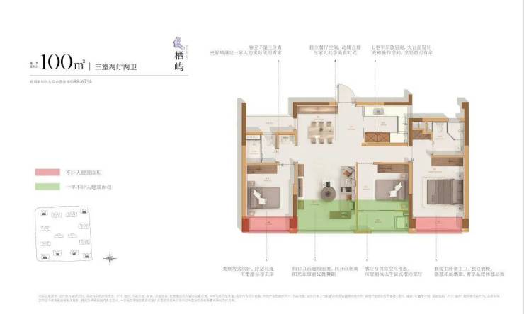 得房率超100%的建面约103㎡ ,让年轻拒绝公摊