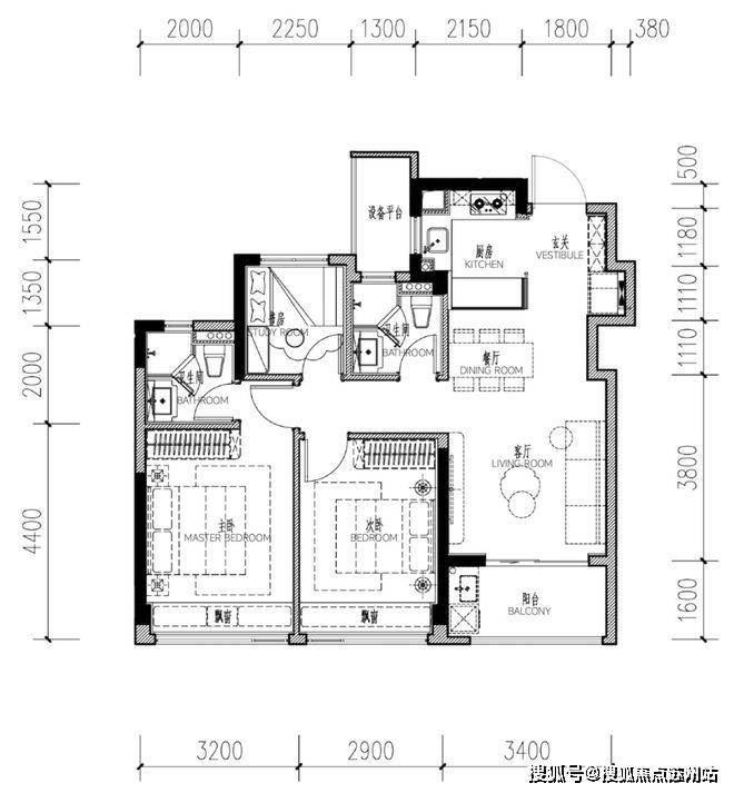 98平方米也是三房两厅两卫格局,分为中间套和边套两种。边套户型自带5.8米大横厅,一体化餐客厅设计,带来更加通透舒畅的居住感。