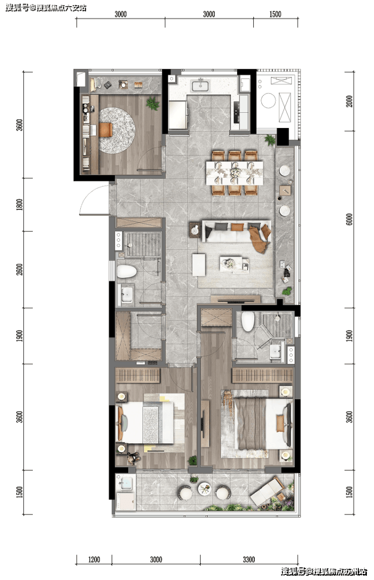 主卧套房+双卫设计,媲美改善户型尺度感。